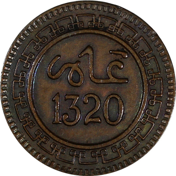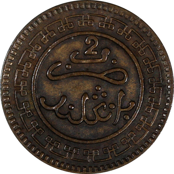 Morocco Abd al-Aziz Bronze 1320 (1903) Bi 2 Mazunas Light Toned Y# 15.1 (19 673)