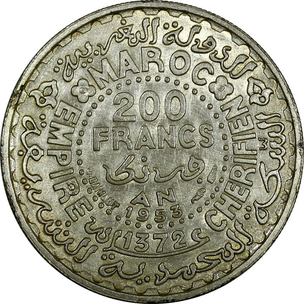 Morocco Mohammed V Silver 1372 (1953) 200 Francs Paris Mint ch.Unc Y# 53 ( 898)