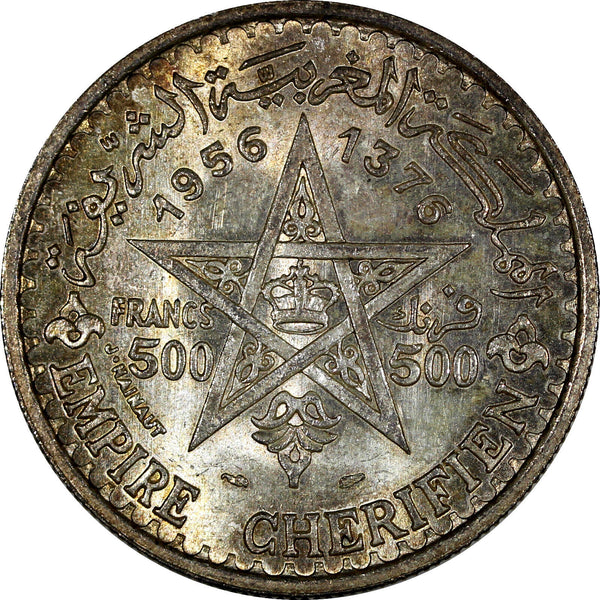 Morocco Mohammed V Silver AH1376//1956 500 Francs UNC HIGH GRADE Y# 54 (20 803)
