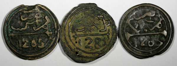 Morocco Sidi Mohammed IV LOT OF 3 COINS AH1285(1869) 4 Fulus Marrakesh C166.2(9)