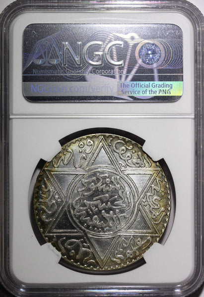 Morocco Silver AH299 (1882) 10 Dirhams Paris Mint NGC UNC DETAILS Y# 8 (011)
