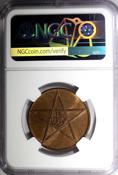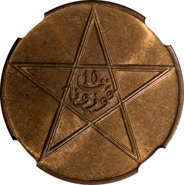 Morocco Yusef Bronze AH1340 (1922) 10 Mazunas 30mm PARIS NGC MS63 BN Y# 29.1 (6)