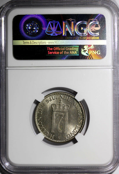 NORWAY Haakon VII Copper-Nickel 1956 Krone GRADED NGC MS63 Thick Border KM# 397.2 Obverse: Crowned monogram Reverse: Crowned shield divides date YOU WILL RECEIVED THE SAME COIN AS PICTURED. ALL COINS ARE AUTHENTIC AS DESCRIBED.