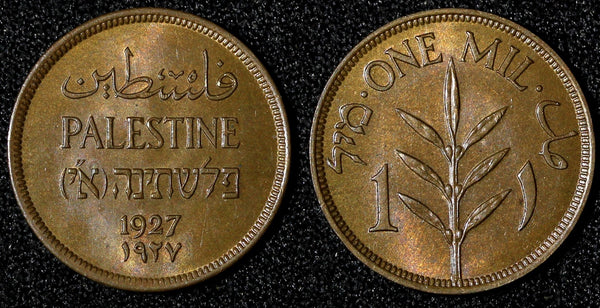 Palestine British Mandate Bronze 1927 1 Mil 1st Date Type UNC KM# 1 (28 553)