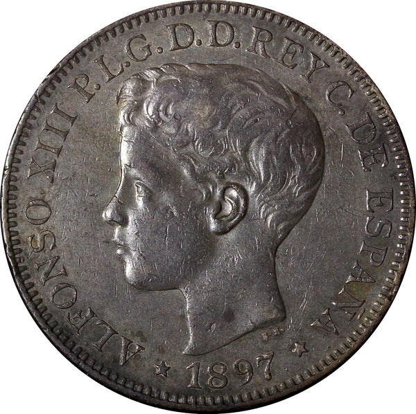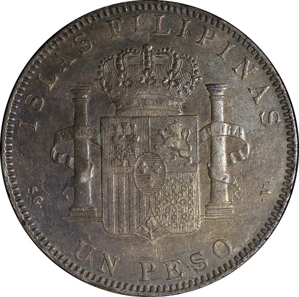 Philippines Alfonso XIII Silver 1897 Peso aUNC Nice Toned KM# 154 (28 103)