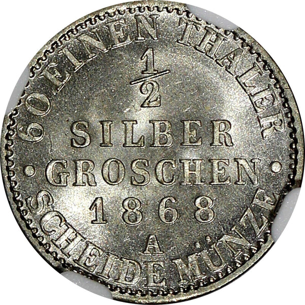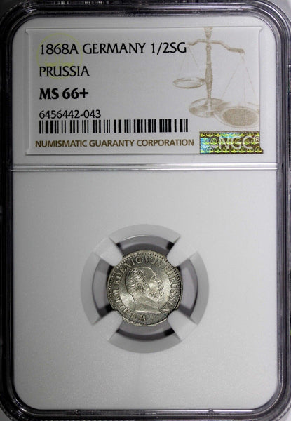 German States PRUSSIA Silver 1868 A 1/2 Neu-Groschen NGC MS66+ TOP GRADED KM#484