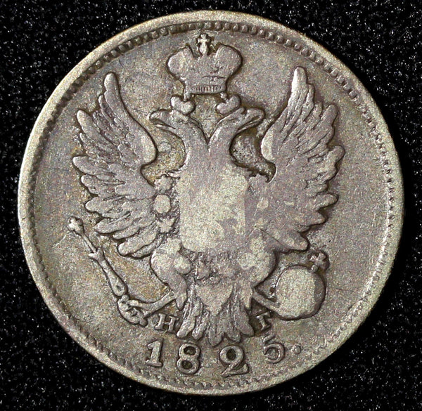 Russia Aleksandr I Silver 1825 SPB NG 20 Kopecks RARE C# 128;Bit-214(R1);Pet-10R