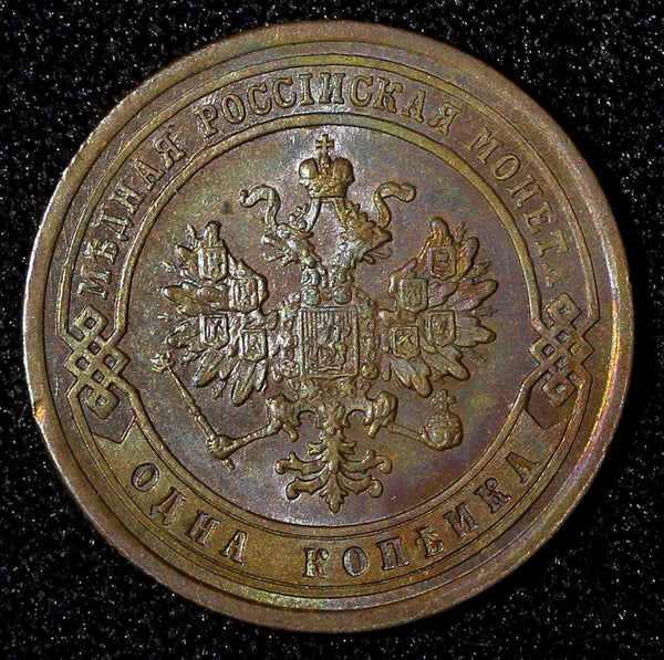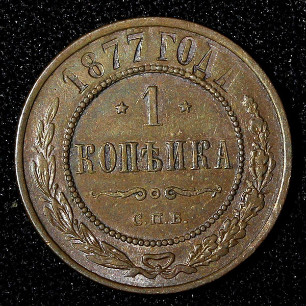 RUSSIA Alexander II Copper 1877 SPB 1 Kopeck St. Petersburg aUNC Y# 9.2 (722)