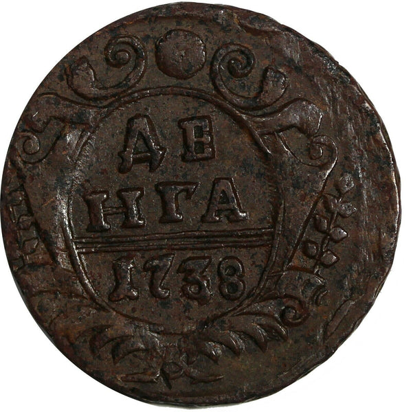 RUSSIA Anna Ivanovna Copper 1738 Denga Ekaterinburg Mint RED-BROWN .VF CONDITION KM# 188 Obverse: Crowned double-headed eagle Reverse: Value and date in cartouche Reverse Legend: DENGA 15 322 Please check out my other listings and we will be happy to combine in one package ! YOU WILL RECEIVED THE SAME COIN AS PICTURED. ALL COINS ARE AUTHENTIC AS DESCRIBED.