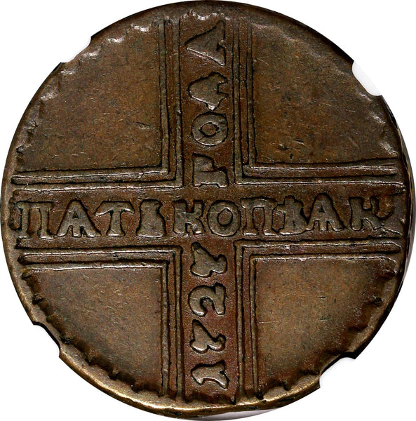 Russia Catherine I Copper 1727 KD 5 Kopecks Moscow Mint NGC VF25 KM# 179 (17)