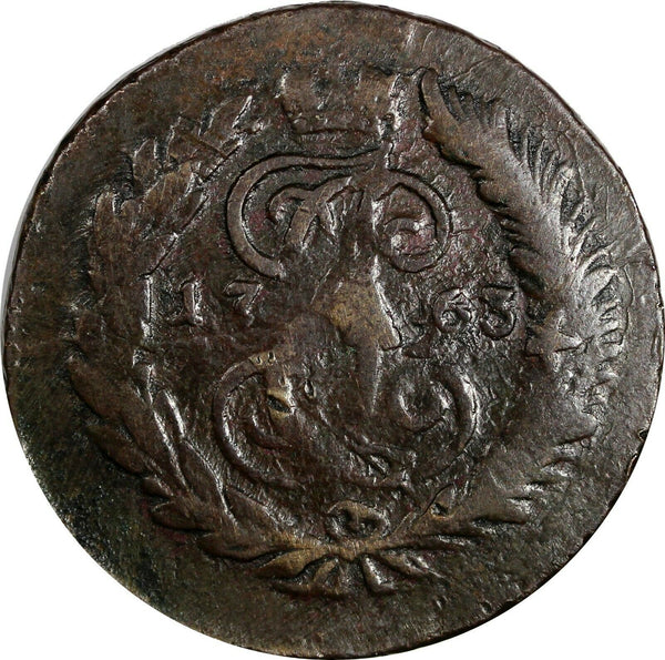 COPPER 1763 SPM 2 Kopecks Struck Over 4 Kopecks 1762