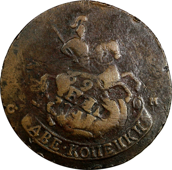 Russia CATHERINE II COPPER 1763 SPM 2 Kopecks Struck Over 4 Kopecks 1762 ST.PETERSBURG MINT CLEAR VISIBLE DATE VARIETY SMALL "6" and LARGE "3" IN DATE VF CONDITION 14,39g. C# 58.6 Obverse: Crowned monogram of Ekaterina II (I E II) divides date within wreat. Reverse: St. George on horse slaying dragon. Please check out my other listings and we will be happy to combine in one package ! YOU WILL RECEIVED THE SAME COIN AS PICTURED. ALL COINS ARE AUTHENTIC AS DESCRIBED. 14 748