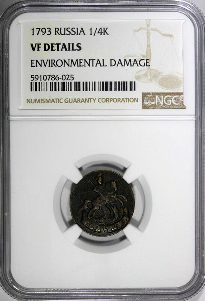 Russia Catherine II Copper 1793 Polushka NGC VF Det. Mint-79,000 RARE C#55.2(25)