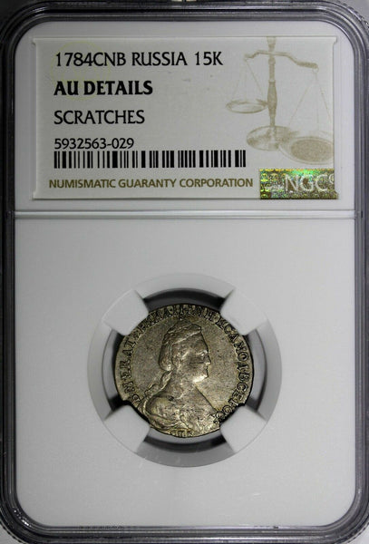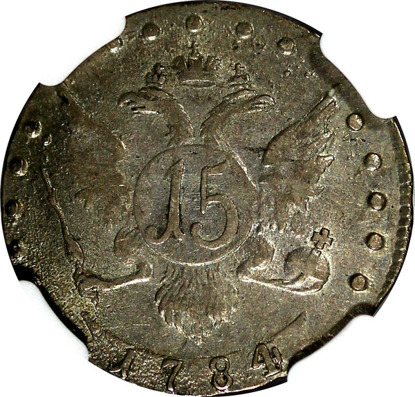 Russia Catherine II Silver 1784 SPB 15 Kopeks NGC AU DETAILS C# 62c (029)