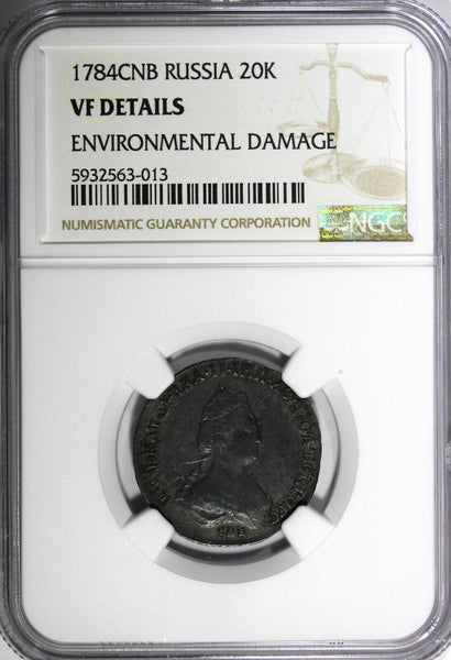 Russia Catherine II Silver 1784 SPB 20 Kopeks NGC VF Details Toned C# 63c (013)
