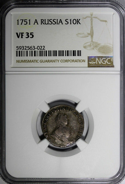 Silver 1751-A 10 Kopeks,Grivennik