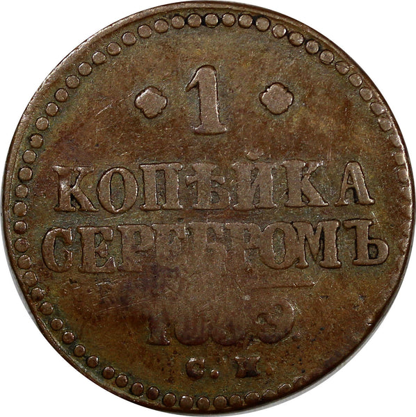 Russia Nicholas I Copper 1839 CM 1 Kopek LAST KEY DATE FOR THE TYPE RARE Fine Condition.Brown.Soft Struck Bitkin-755(R) C#138.3 YOU WILL RECEIVED THE SAME COIN AS PICTURED. ALL COINS ARE AUTHENTIC AS DESCRIBED. 9973