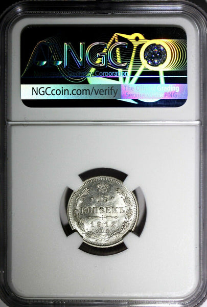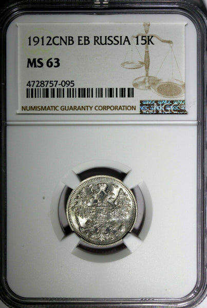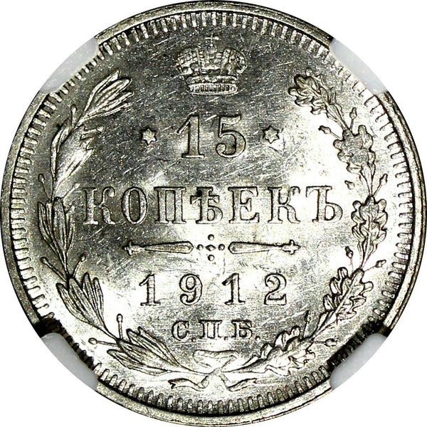RUSSIA Nicholas II Silver 1912 SPB EB 15 Kopeks NGC MS63 HIGH GRADE GEM Y# 21a.2