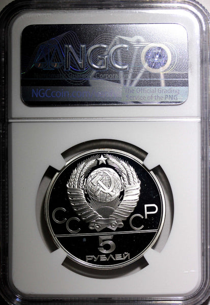 Russia Silver PROOF 1980 5 Roubles Olympics, Moscow Gorodki NGC PF65 UC Y#182