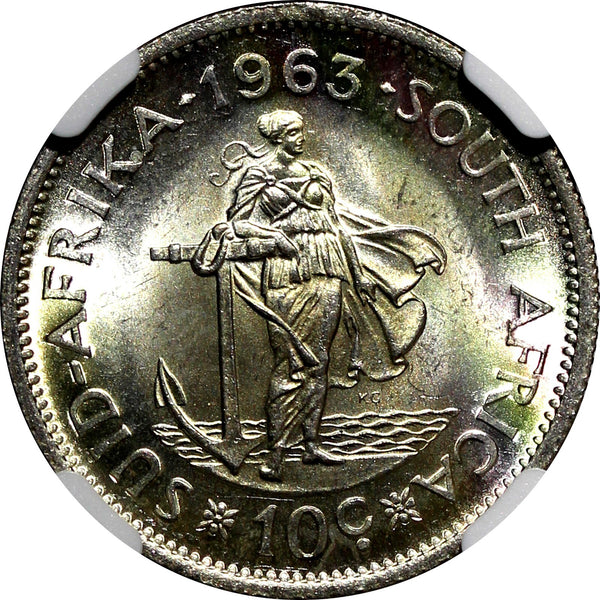 South Africa Silver 1963 10 Cents Jan van Riebeeck NGC MS65 GEM BU KM# 60 (040)