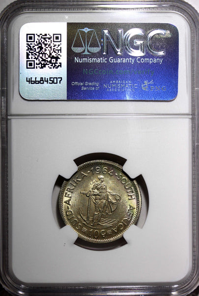 South Africa Silver 1964 10 Cents Jan van Riebeeck NGC MS63 Toned KM# 60 (038)