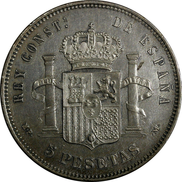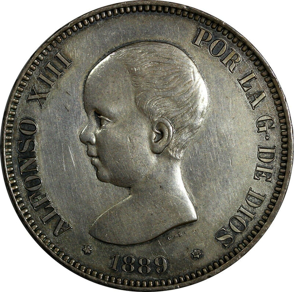 Spain Alfonso XIII Silver 1889 MPM 5 Pesetas XF Condition 37mm KM# 689 (18 840)