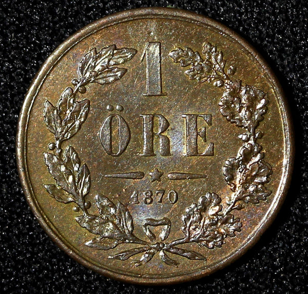 Sweden Carl XV Adolf Bronze 1870 L.A.1 Ore Choice UNC Condition KM# 705 (28 219)