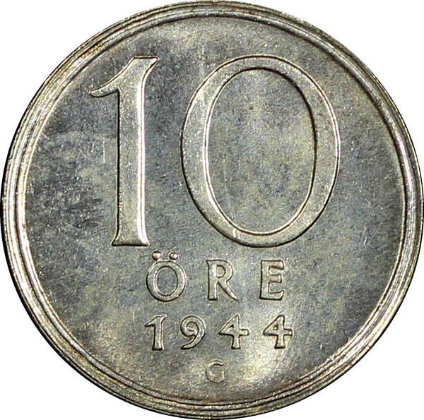 Sweden Gustaf V (1907-1950) Silver 1944 G 10 Öre BU KM# 813 (22 068)