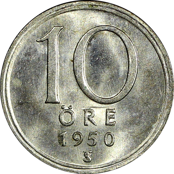 Sweden Gustaf V (1907-1950) Silver 1950 10 Öre UNC KM# 813 (22 059)