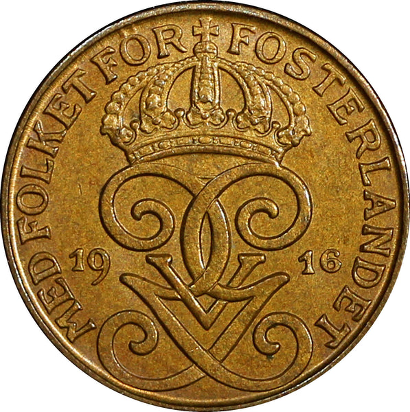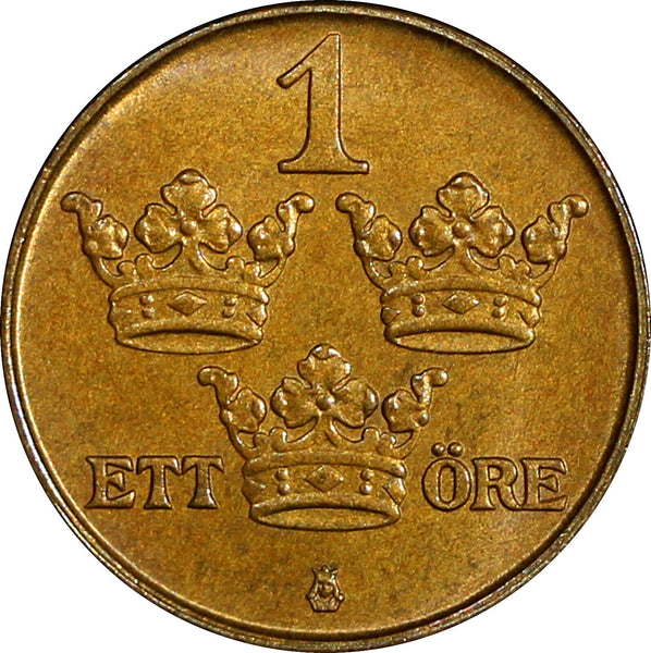 Reverse: The Three crowns of Sweden divides value in letters at base of lower