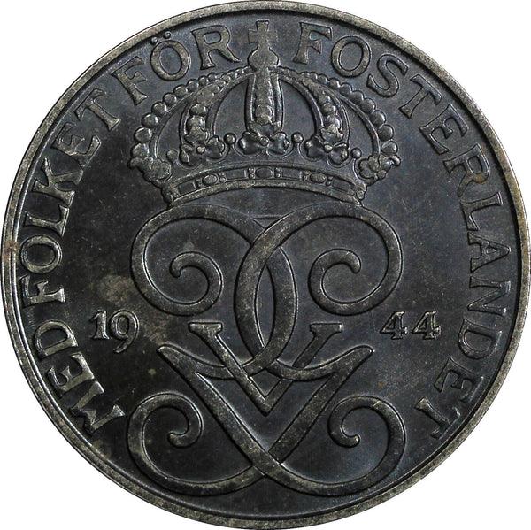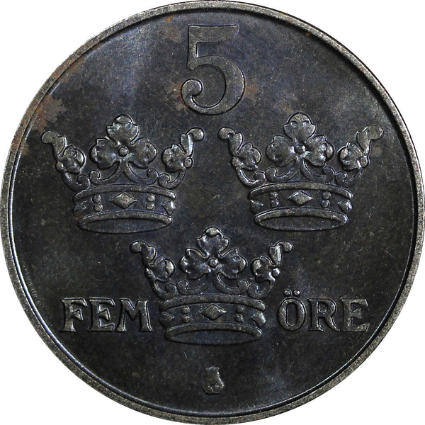 Gustaf V of Sweden divides date and the King's motto around the rim.