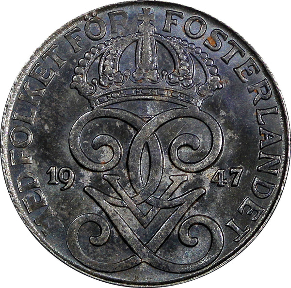 Reverse: The Three crowns of Sweden divides value in letters at base of lower