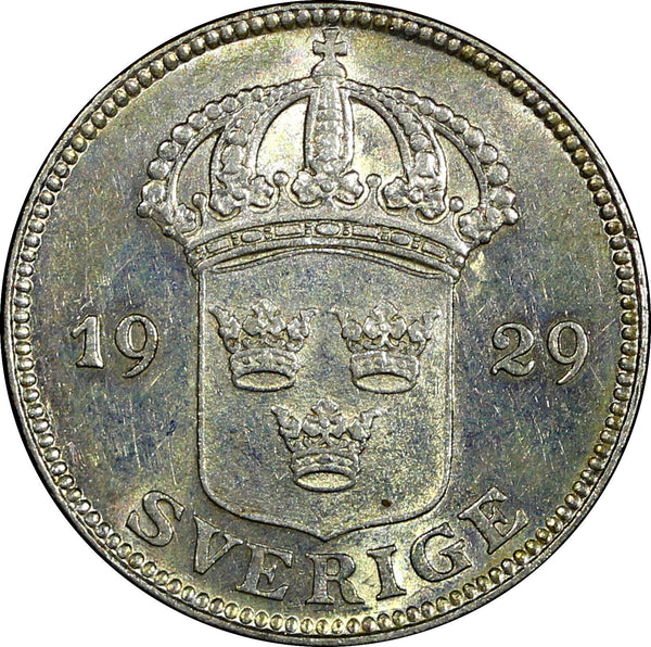SWEDEN Gustaf V Silver 1929 G 50 Ore Nice Toned BETTER DATE KM# 788 (22 001)