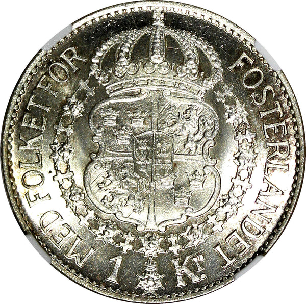 Reverse: Crowned ornate coat of arms of Sweden, circled by the Seraphim Order