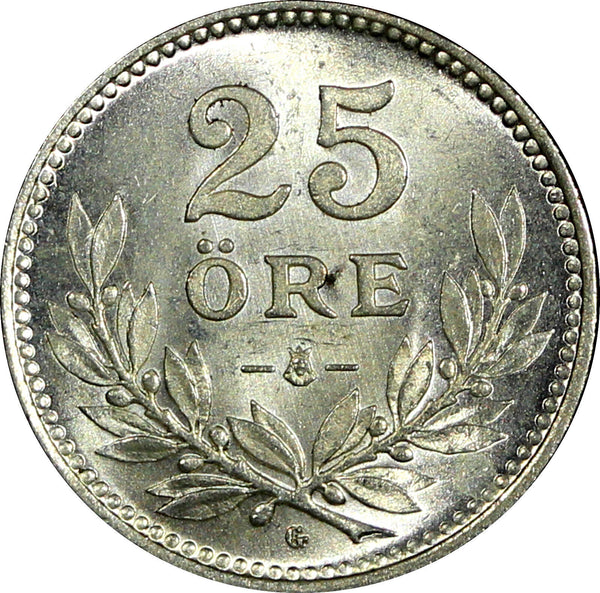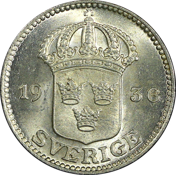 Sweden Gustaf V Silver 1936 G 25 Öre Choice UNC Luster KM# 785 (22 049)
