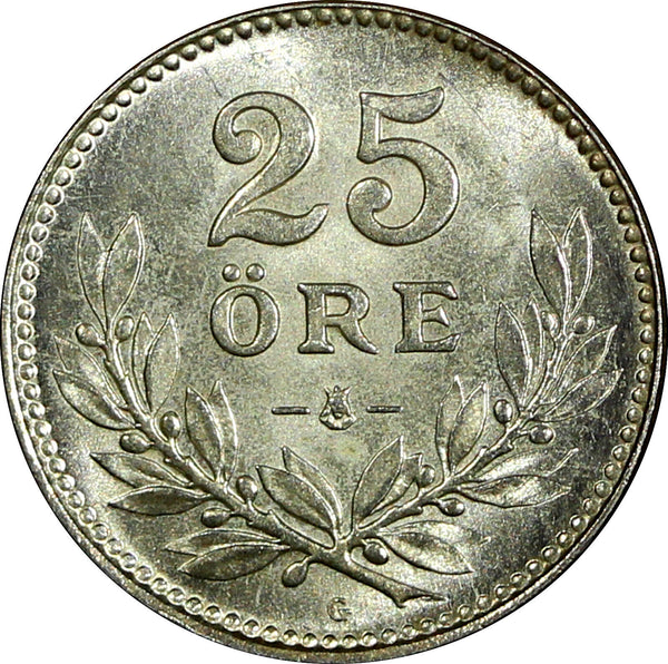 Sweden Gustaf V Silver 1939 G 25 Öre GEM BU KM# 785 (22 043)
