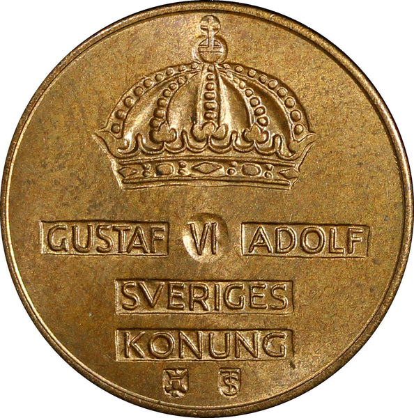 Sweden Gustaf VI Bronze 1952 TS 2 Ore GEM BU Toned KM# 821 (21 959)
