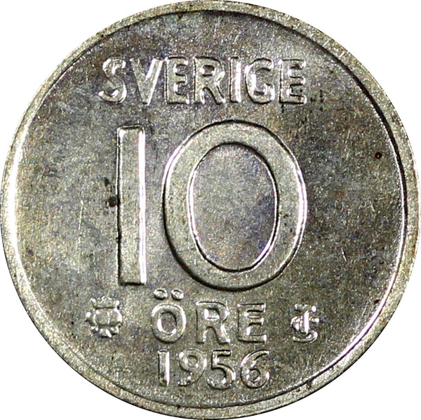 Sweden Gustaf VI SILVER 1956 10 Öre High Grade KM# 823 (22 094)