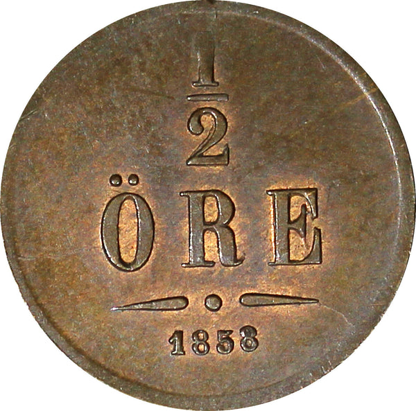 Sweden Oscar I Bronze 1858 1/2 Ore RED-BROWN UNC KM# 686 (21 886)