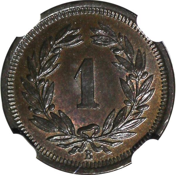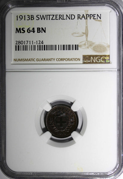 Switzerland Bronze 1913 B 1 Rappen NGC MS64 BN HELVETIA KM# 3.2 (124)