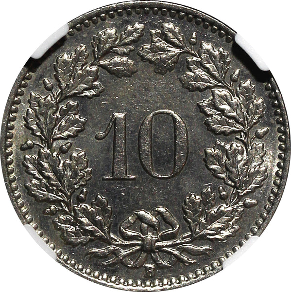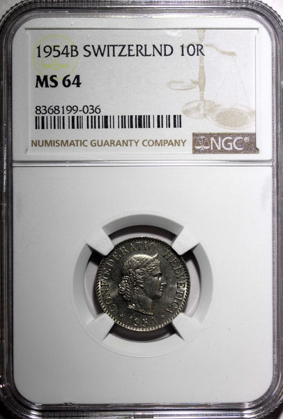 Switzerland Copper-Nickel 1954 B 10 Rappen NGC MS64 BETTER DATE KM# 27 (036)