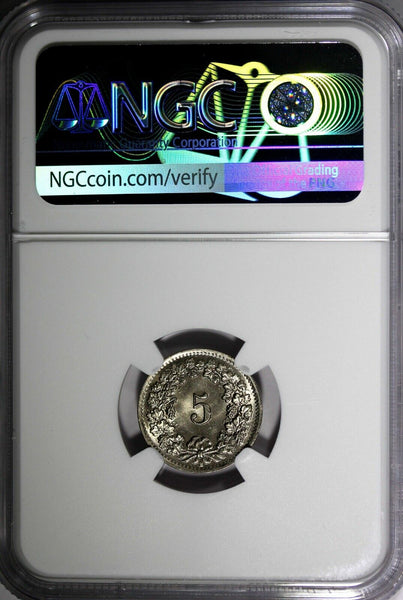 SWITZERLAND Copper-Nickel 1955 B 5 Rappen NGC MS65 HELVETICA KM# 26 (004)