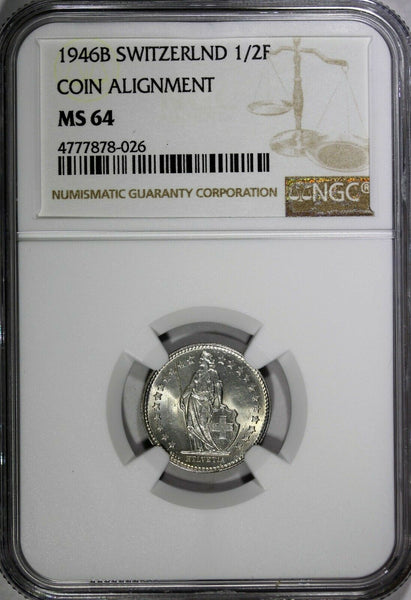 Switzerland Silver 1946 B 1/2 Franc NGC MS64 Standing Helvetia KM# 23 (026)