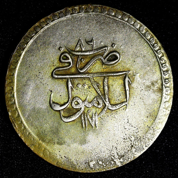 TURKEY Mustafa III Silver AH1171 (1772) Year 86 1 Piastre Toned SCARCE KM# 321.2