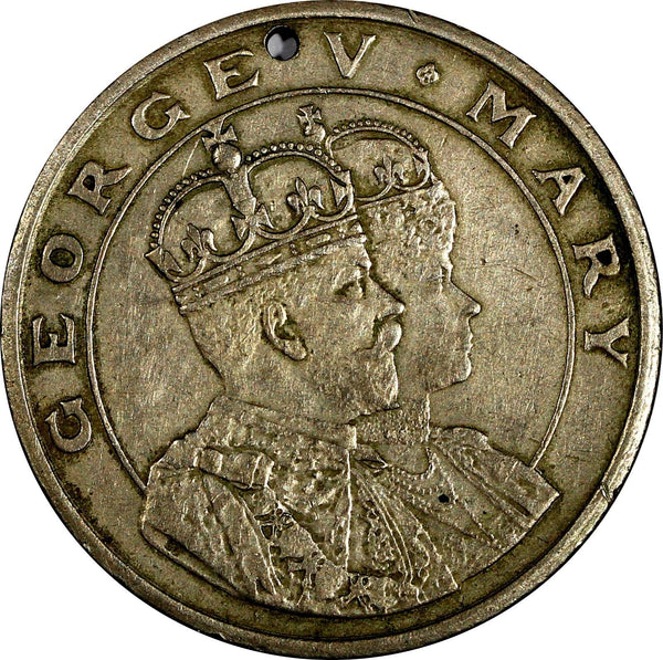 GREAT BRITAIN MEDAL George V & Mary Coronation Durbar - 1911;12th December 32mm. Holed. GREAT BRITAIN MEDAL George V & Mary Coronation Durbar - 1911; 12th December 32mm Delhi Durbar (Coronation Durbar) of 1911 Obverse : Conjoined crowned busts of King and Queen, right. Around border : GEORGE V * MARY Lettering: GEORGE V * MARY Reverse: Imperial crown at top with sun rays. Two branches at sides enclosing : Please Check out my other listings and we will be happy to combine in one package ! YOU WILL RECEIVED THE SAME COIN AS PICTURED. ALL COINS ARE AUTHENTIC AS DESCRIBED. 13 092