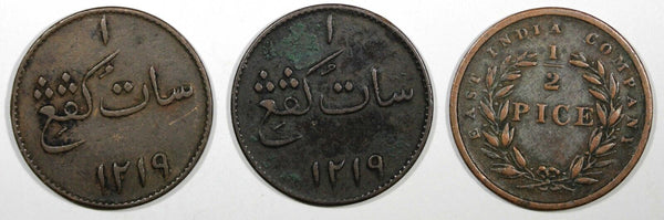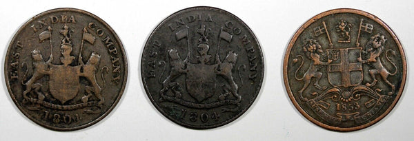 British East Indies LOT OF 3 COINS 1804//AH1219 1 Keping ,1853 1/2 Pice (588)