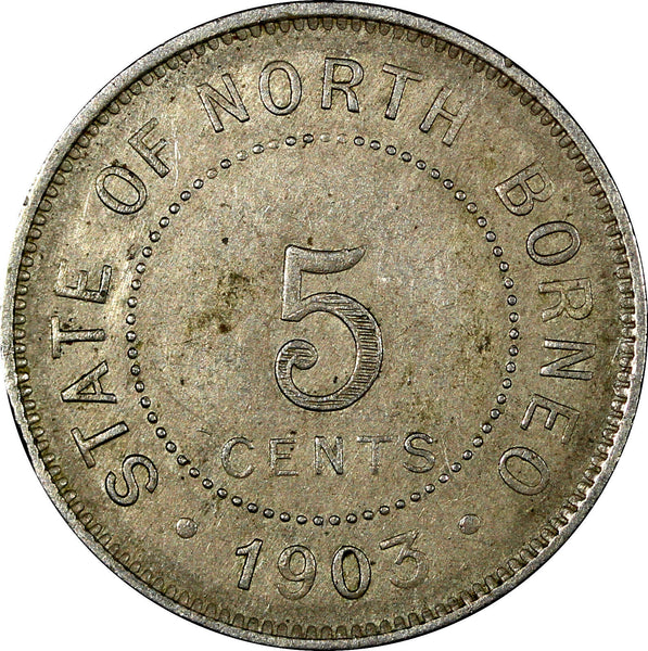 British North Borneo Copper-Nickel 1903 H 5 Cents Heaton's Mint VF KM# 5 (097)