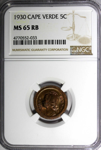 Cape Verde Bronze 1930 5 Centavos NGC MS65 RB 1 GRADED HIGHEST BY NGC KM# 1(3)